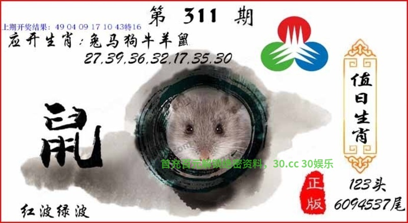 | 305期:两波中特💔绿蓝💔开:鼠42准 |